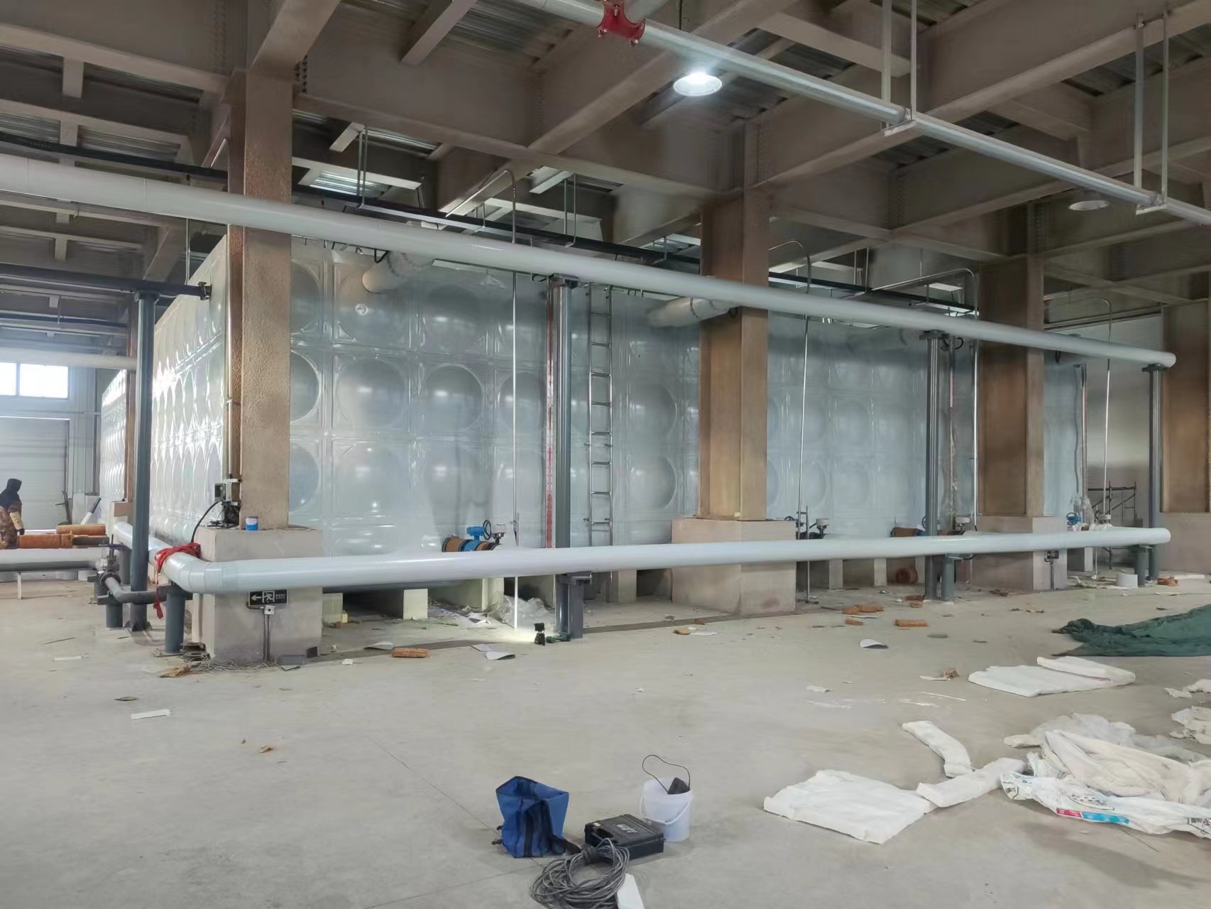 供貨單位:山東省騰翔集團武城模壓制品有限公司施工單位:寧波鋼鐵有限公司產品名稱:不銹鋼聚氨酯保溫水箱產品型號:5米*2.5米*2米現場圖:...